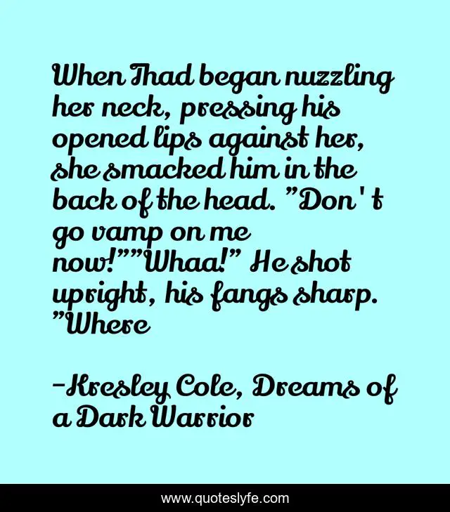 "Kresley Cole, Dreams of a Dark Warrior Quotes." Quoteslyfe.com, 2025. Mon. 08 Dec. 2025. <https://www.quoteslyfe.com/quote/When-Thad-began-nuzzling-her-neck-pressing-131556>.