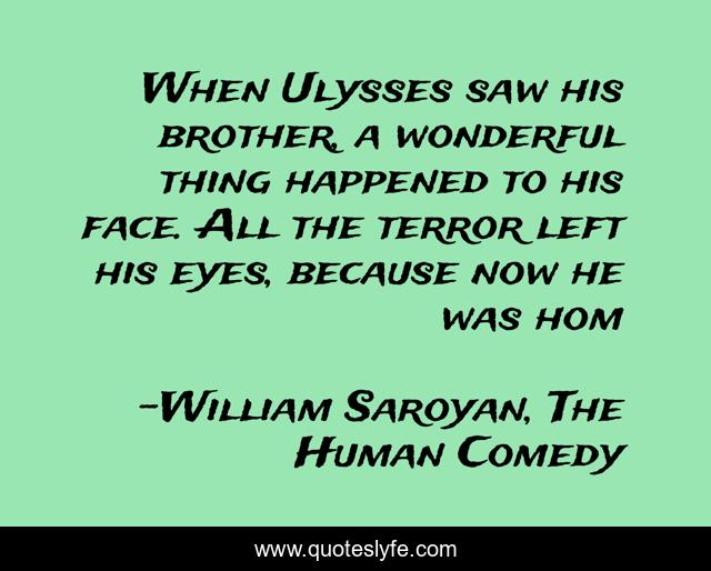 "William Saroyan, The Human Comedy Quotes." Quoteslyfe.com, 2025. Tue. 09 Dec. 2025. <https://www.quoteslyfe.com/quote/When-Ulysses-saw-his-brother-a-wonderful-85888>.