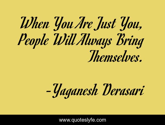 This page presents the quote "When You Are Just You, People Will Always Bring Themselves.". Author of this quote is Yaganesh Derasari. This quote is about self, phylosophy, humanity, people,.
