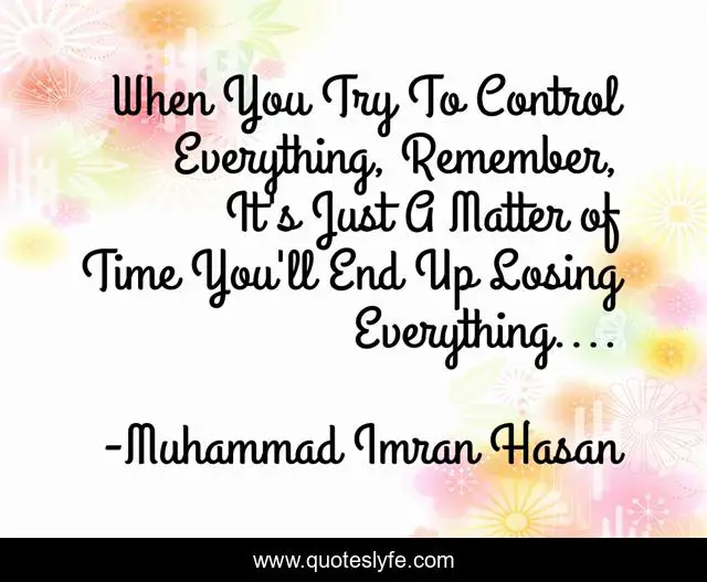 This page presents the quote "When You Try To Control Everything, Remember, It's Just A Matter of Time You'll End Up Losing Everything....". Author of this quote is Muhammad Imran Hasan. This quote is about life-lesson, life, caution, value, value-of-time,.