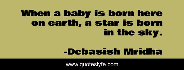 This page presents the quote "When a baby is born here on earth, a star is born in the sky.". Author of this quote is Debasish Mridha. This quote is about miraboli, oscar-wilde, a-star-is-born-in-the-sky, philosophy, debasish-mridha, tagore, quotes, buddha, gandhi,.