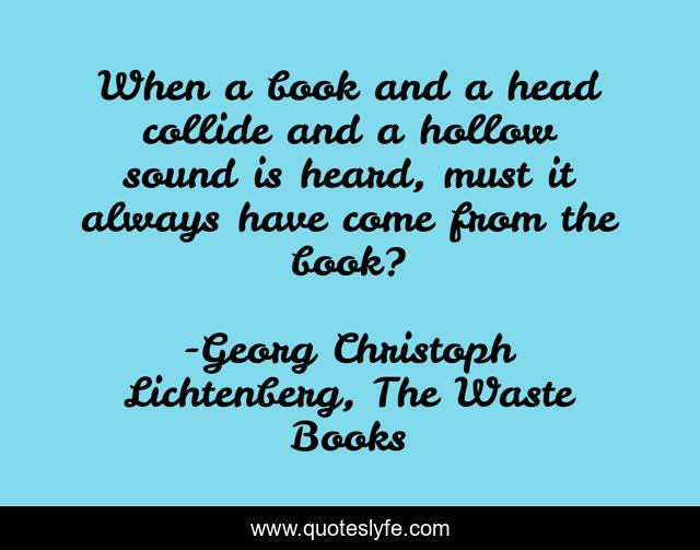"Georg Christoph Lichtenberg, The Waste Books Quotes." Quoteslyfe.com, 2025. Fri. 05 Dec. 2025. <https://www.quoteslyfe.com/quote/When-a-book-and-a-head-collide-43348>.