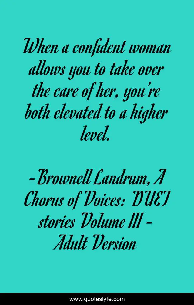 "Brownell Landrum, A Chorus of Voices: DUET stories Volume III - Adult Version Quotes." Quoteslyfe.com, 2025. Tue. 09 Dec. 2025. <https://www.quoteslyfe.com/quote/When-a-confident-woman-allows-you-to-177281>.