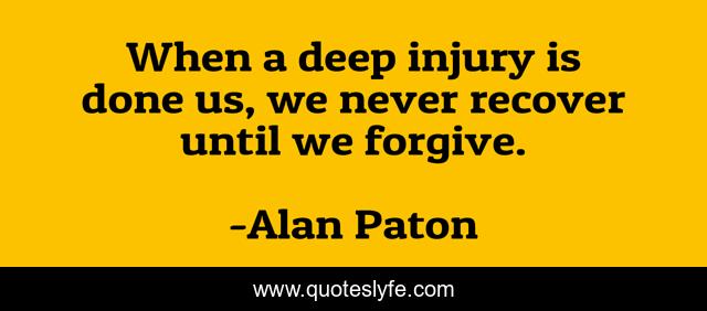 This page presents the quote "When a deep injury is done us, we never recover until we forgive.". Author of this quote is Alan Paton. This quote is about done, forgive, deep,.