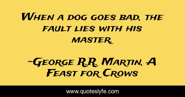 This page presents the quote "When a dog goes bad, the fault lies with his master.". Author of this quote is George R.R. Martin, A Feast for Crows. This quote is about master, dogs,.
