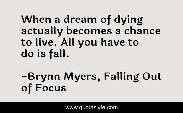 This page presents the quote "When a dream of dying actually becomes a chance to live. All you have to do is fall.". Author of this quote is Brynn Myers, Falling Out of Focus. .