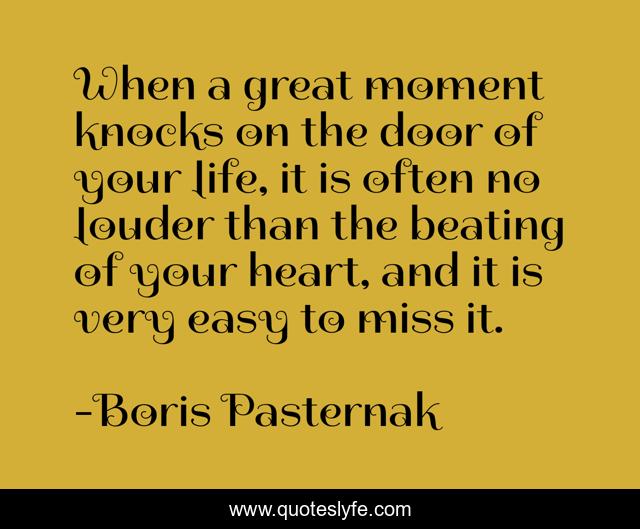 This page presents the quote "When a great moment knocks on the door of your life, it is often no louder than the beating of your heart, and it is very easy to miss it.". Author of this quote is Boris Pasternak. .