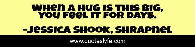 "Jessica Shook, Shrapnel Quotes." Quoteslyfe.com, 2025. Fri. 05 Dec. 2025. <https://www.quoteslyfe.com/quote/When-a-hug-is-this-big-you-86065>.