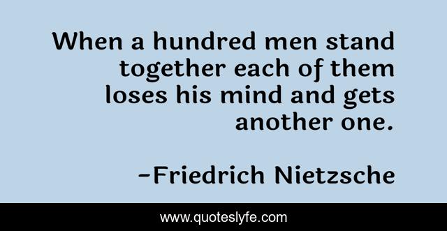 "Friedrich Nietzsche Quotes." Quoteslyfe.com, 2025. Fri. 05 Dec. 2025. <https://www.quoteslyfe.com/quote/When-a-hundred-men-stand-together-each-262825>.