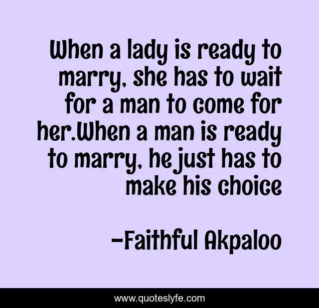 "Faithful Akpaloo Quotes." Quoteslyfe.com, 2025. Mon. 08 Dec. 2025. <https://www.quoteslyfe.com/quote/When-a-lady-is-ready-to-marry-76900>.