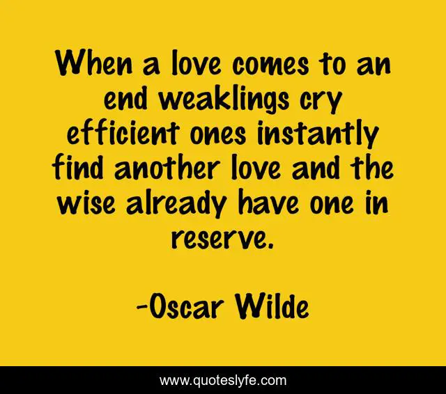 This page presents the quote "When a love comes to an end weaklings cry efficient ones instantly find another love and the wise already have one in reserve.". Author of this quote is Oscar Wilde. .