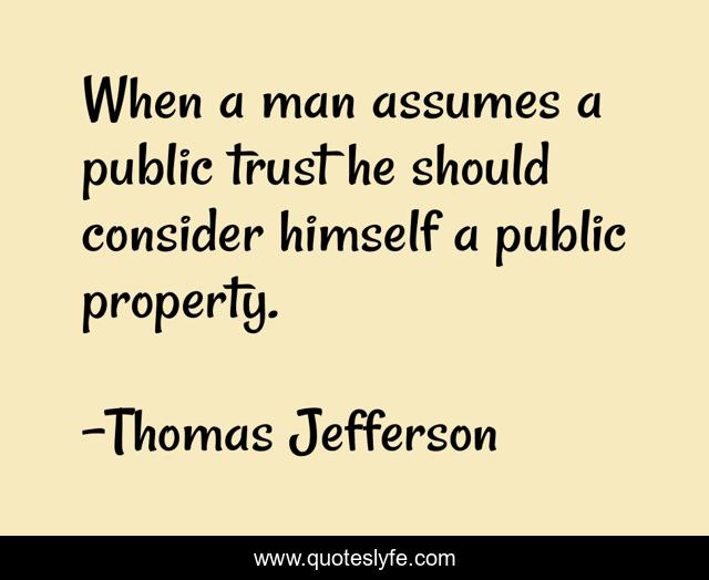 This page presents the quote "When a man assumes a public trust he should consider himself a public property.". Author of this quote is Thomas Jefferson. This quote is about property, man,.