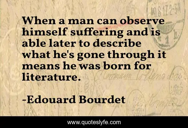 This page presents the quote "When a man can observe himself suffering and is able later to describe what he's gone through it means he was born for literature.". Author of this quote is Edouard Bourdet. .