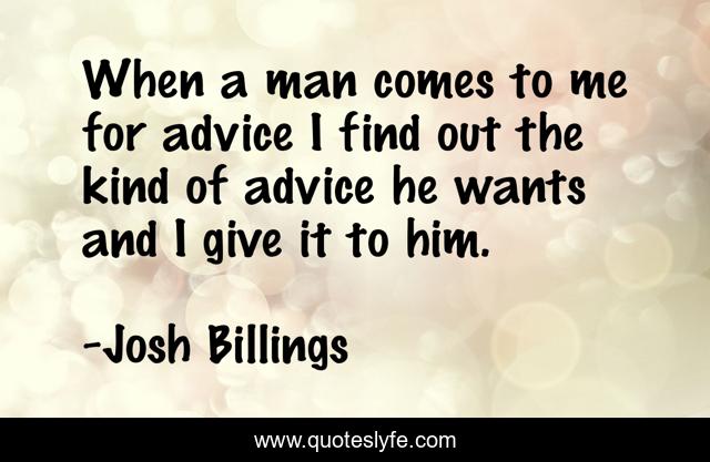 This page presents the quote "When a man comes to me for advice I find out the kind of advice he wants and I give it to him.". Author of this quote is Josh Billings. .