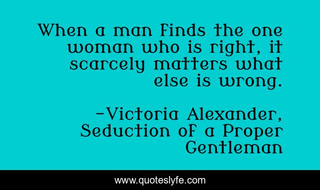 "Victoria Alexander, Seduction of a Proper Gentleman Quotes." Quoteslyfe.com, 2025. Sat. 06 Dec. 2025. <https://www.quoteslyfe.com/quote/When-a-man-finds-the-one-woman-188070>.