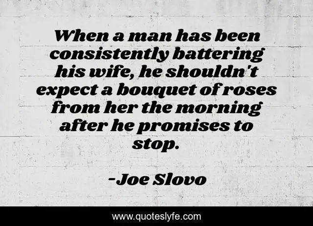 This page presents the quote "When a man has been consistently battering his wife, he shouldn't expect a bouquet of roses from her the morning after he promises to stop.". Author of this quote is Joe Slovo. This quote is about roses, man, wife,.
