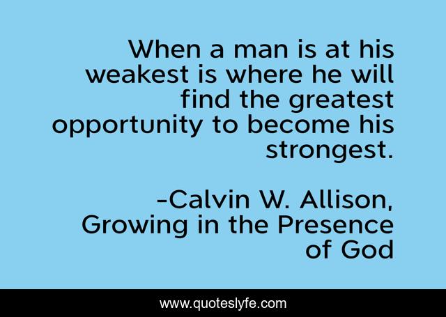 "Calvin W. Allison, Growing in the Presence of God Quotes." Quoteslyfe.com, 2025. Fri. 05 Dec. 2025. <https://www.quoteslyfe.com/quote/When-a-man-is-at-his-weakest-104794>.