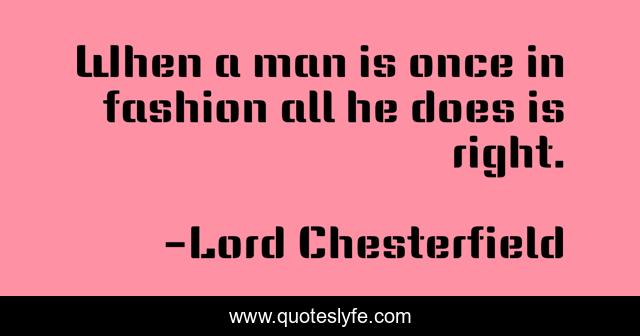 This page presents the quote "When a man is once in fashion all he does is right.". Author of this quote is Lord Chesterfield. .