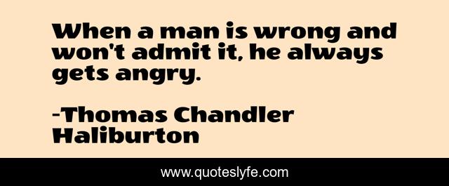 This page presents the quote "When a man is wrong and won't admit it, he always gets angry.". Author of this quote is Thomas Chandler Haliburton. This quote is about angry, admit, man,.