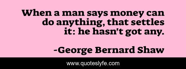 This page presents the quote "When a man says money can do anything, that settles it: he hasn't got any.". Author of this quote is George Bernard Shaw. This quote is about got, anything, man,.
