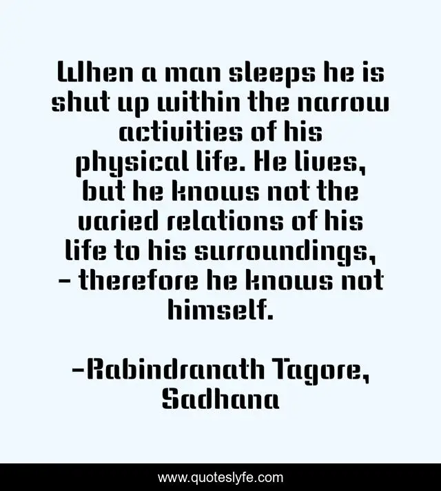 "Rabindranath Tagore, Sadhana Quotes." Quoteslyfe.com, 2025. Sat. 06 Dec. 2025. <https://www.quoteslyfe.com/quote/When-a-man-sleeps-he-is-shut-181547>.