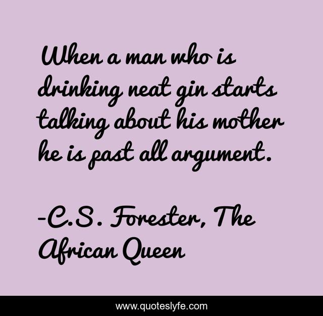 This page presents the quote "When a man who is drinking neat gin starts talking about his mother he is past all argument.". Author of this quote is C.S. Forester, The African Queen. This quote is about argument, gin, drinking, alcohol, mothers,.