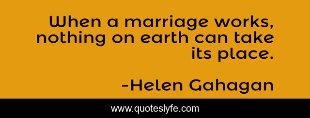 This page presents the quote "When a marriage works, nothing on earth can take its place.". Author of this quote is Helen Gahagan. This quote is about nothing, earth, place,.