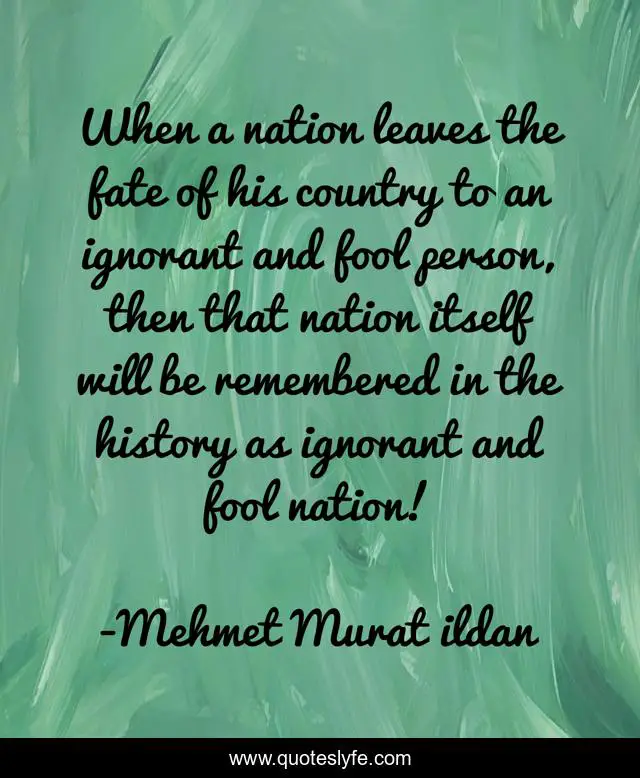 This page presents the quote "When a nation leaves the fate of his country to an ignorant and fool person, then that nation itself will be remembered in the history as ignorant and fool nation!". Author of this quote is Mehmet Murat ildan. This quote is about dictatorships, fool, ildan-words, dictatorial, fate, turkish, ildan-wisdom, ignorant, turkish-playwrights,.