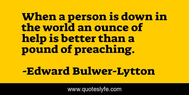 This page presents the quote "When a person is down in the world an ounce of help is better than a pound of preaching.". Author of this quote is Edward Bulwer-Lytton. This quote is about helping, people,.