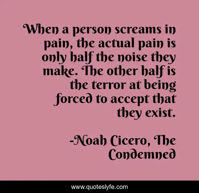 "Noah Cicero, The Condemned Quotes." Quoteslyfe.com, 2025. Mon. 08 Dec. 2025. <https://www.quoteslyfe.com/quote/When-a-person-screams-in-pain-the-75458>.