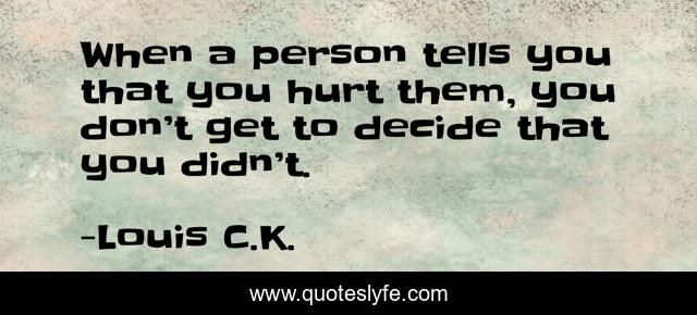 This page presents the quote "When a person tells you that you hurt them, you don’t get to decide that you didn’t.". Author of this quote is Louis C.K.. This quote is about apologies, hurt,.