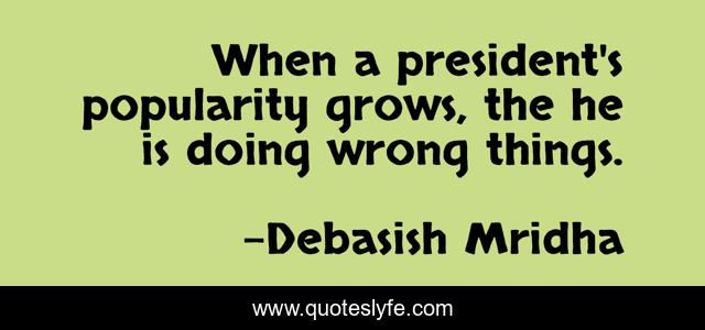 This page presents the quote "When a president's popularity grows, the he is doing wrong things.". Author of this quote is Debasish Mridha. This quote is about debasish, mridha, philosophy, debasish-mridha, popularity, popularity-grows, president, doing-wrong,.