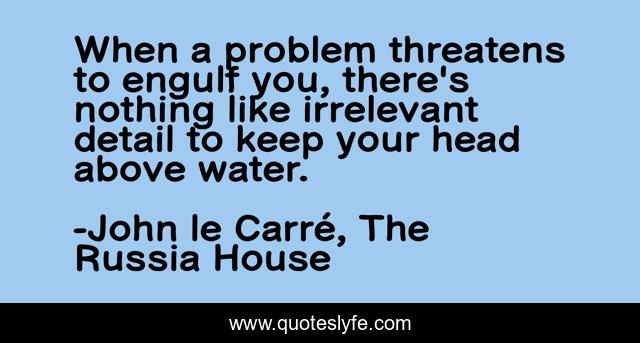 This page presents the quote "When a problem threatens to engulf you, there's nothing like irrelevant detail to keep your head above water.". Author of this quote is John le Carré, The Russia House. This quote is about attitude-toward-life, problems, details,.