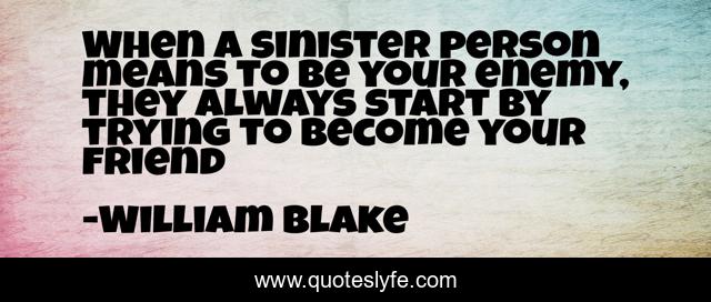 This page presents the quote "When a sinister person means to be your enemy, they always start by trying to become your friend". Author of this quote is William Blake. This quote is about friends, enemies,.