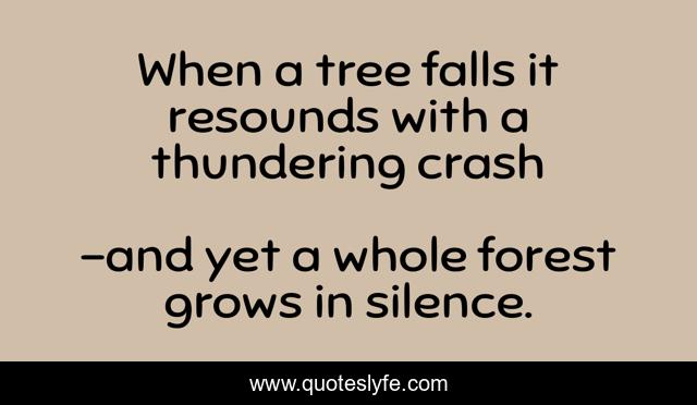 This page presents the quote "When a tree falls it resounds with a thundering crash". Author of this quote is and yet a whole forest grows in silence.. .