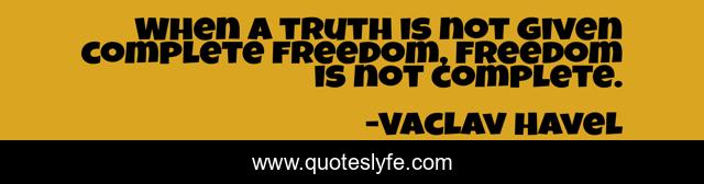 This page presents the quote "When a truth is not given complete freedom, freedom is not complete.". Author of this quote is Vaclav Havel. This quote is about freedom, truth is, complete,.