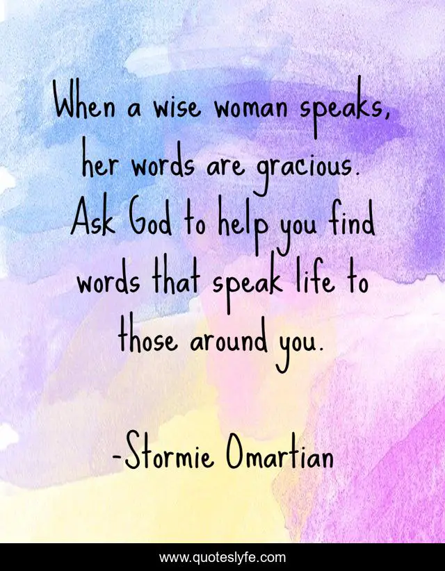"Stormie Omartian Quotes." Quoteslyfe.com, 2025. Mon. 08 Dec. 2025. <https://www.quoteslyfe.com/quote/When-a-wise-woman-speaks-her-words-134652>.