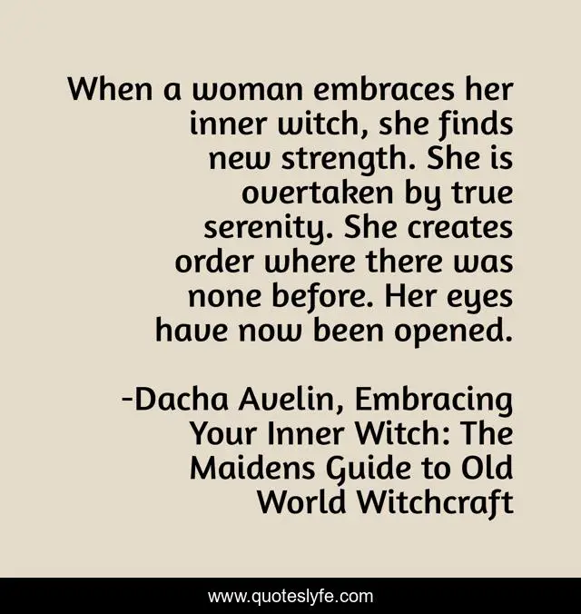 "Dacha Avelin, Embracing Your Inner Witch: The Maidens Guide to Old World Witchcraft Quotes." Quoteslyfe.com, 2025. Sun. 07 Dec. 2025. <https://www.quoteslyfe.com/quote/When-a-woman-embraces-her-inner-witch-106296>.