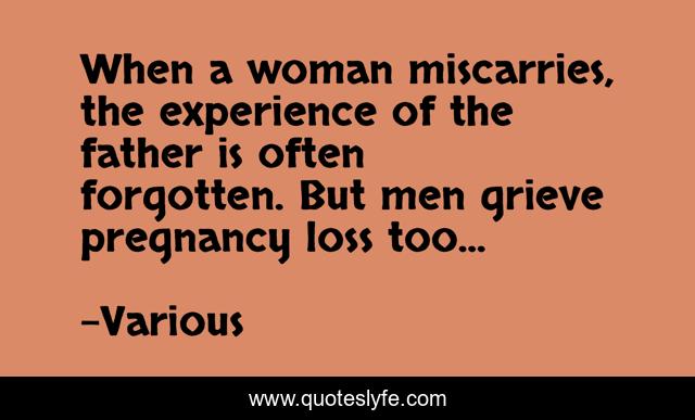 This page presents the quote "When a woman miscarries, the experience of the father is often forgotten. But men grieve pregnancy loss too...". Author of this quote is Various. This quote is about loss, psychology, grief, counseling, psychotherapy, children,.