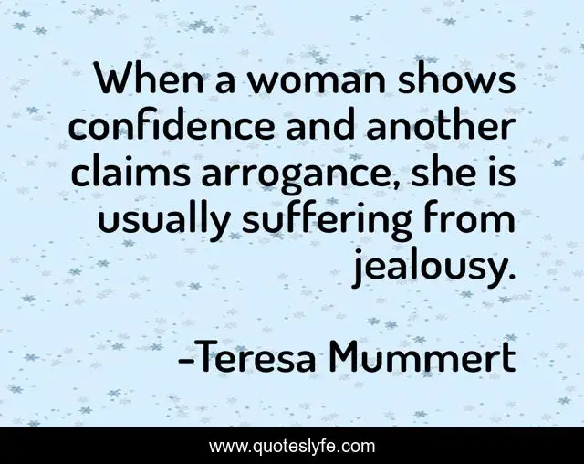 This page presents the quote "When a woman shows confidence and another claims arrogance, she is usually suffering from jealousy.". Author of this quote is Teresa Mummert. This quote is about confidence, arrogance, jealousy, women,.