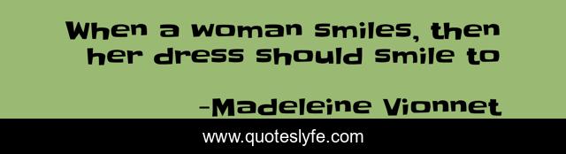 "Madeleine Vionnet Quotes." Quoteslyfe.com, 2025. Sun. 07 Dec. 2025. <https://www.quoteslyfe.com/quote/When-a-woman-smiles-then-her-dress-234394>.