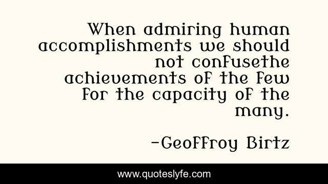 This page presents the quote "When admiring human accomplishments we should not confusethe achievements of the few for the capacity of the many.". Author of this quote is Geoffroy Birtz. .