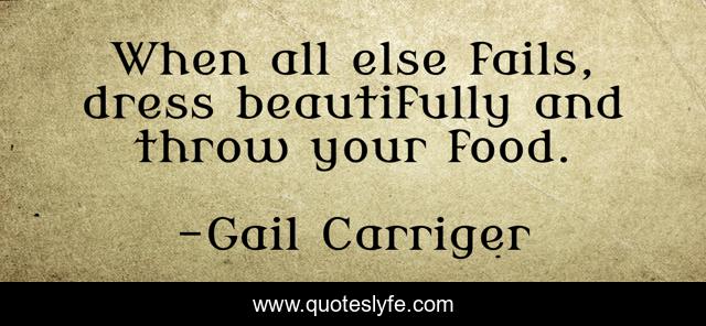 This page presents the quote "When all else fails, dress beautifully and throw your food.". Author of this quote is Gail Carriger. This quote is about when all else fails, dress,.