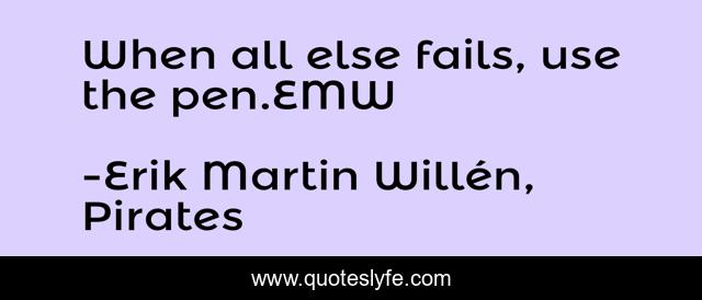 "Erik Martin Willén, Pirates Quotes." Quoteslyfe.com, 2025. Fri. 05 Dec. 2025. <https://www.quoteslyfe.com/quote/When-all-else-fails-use-the-pen-157578>.