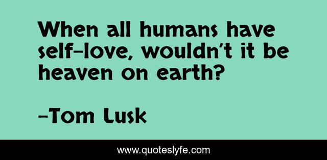 This page presents the quote "When all humans have self-love, wouldn’t it be heaven on earth?". Author of this quote is Tom Lusk. This quote is about self-love, heaven, love, spirituality, change, acceptence, affection,.