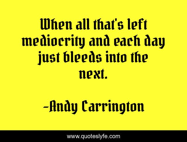 This page presents the quote "When all that's left mediocrity and each day just bleeds into the next.". Author of this quote is Andy Carrington. This quote is about poem, apathy,.