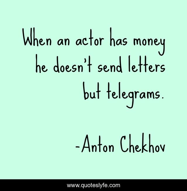 This page presents the quote "When an actor has money he doesn't send letters but telegrams.". Author of this quote is Anton Chekhov. .