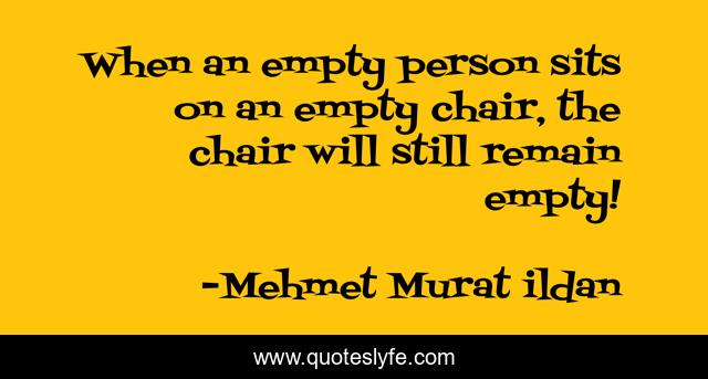 This page presents the quote "When an empty person sits on an empty chair, the chair will still remain empty!". Author of this quote is Mehmet Murat ildan. This quote is about mehmet-murat-ildan, turkish, chairs, turkish-literature, turkish-playwrights, turkish-wisdom-words, ildan-wisdom, turkish-authors, empty-chair,.