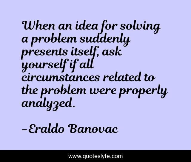 This page presents the quote "When an idea for solving a problem suddenly presents itself, ask yourself if all circumstances related to the problem were properly analyzed.". Author of this quote is Eraldo Banovac. This quote is about problem-solving, problems, ideas,.