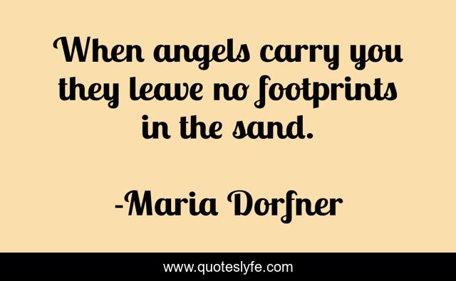 This page presents the quote "When angels carry you they leave no footprints in the sand.". Author of this quote is Maria Dorfner. This quote is about faith, footprints, angels, sand, walking,.
